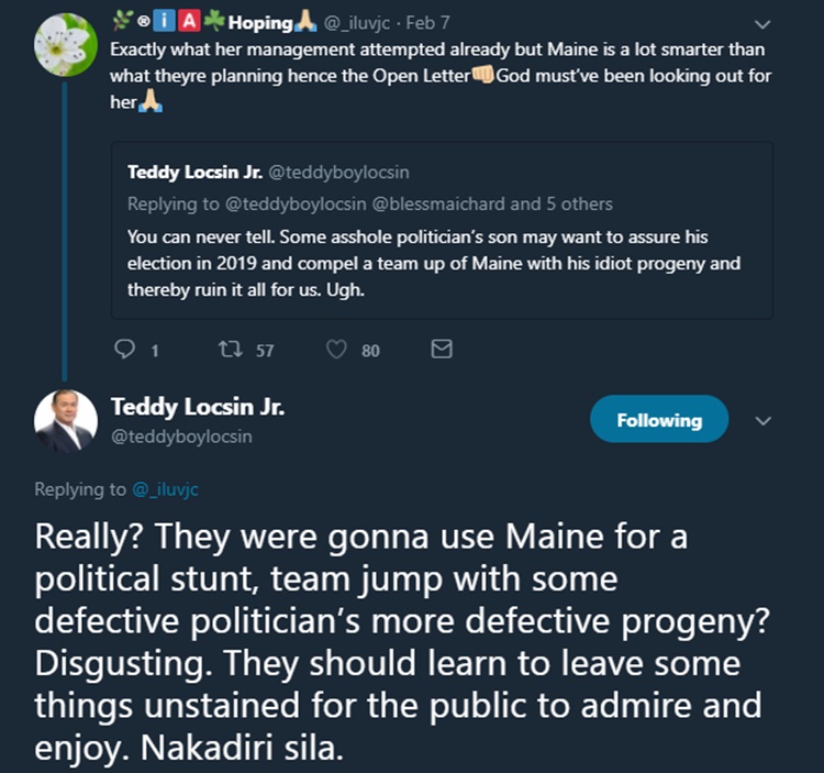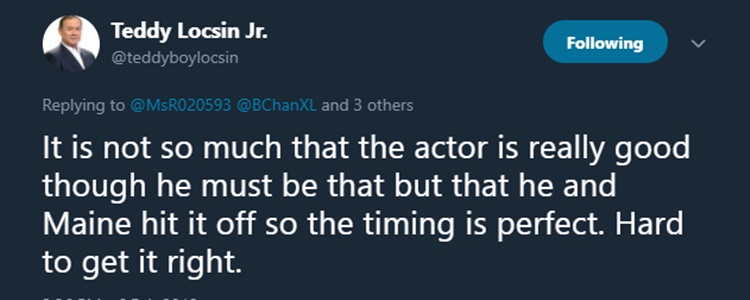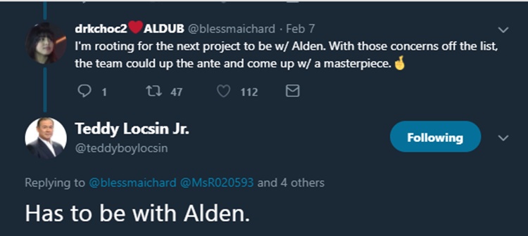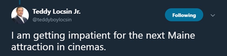 Locsin still wants Alden to be the leading man of Maine on her next movie project. He expressed the said statement on his Twitter post, based on the article published in PEP.ph.