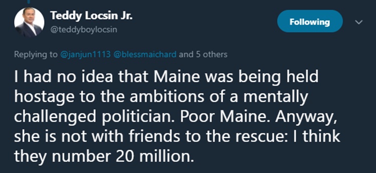 That revelation from the netizen seemed shocked Teddy Locsin Jr.