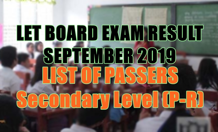 Here is the LET Board Exam Result September 2019 List of Passers-Secondary Level (P-R)
