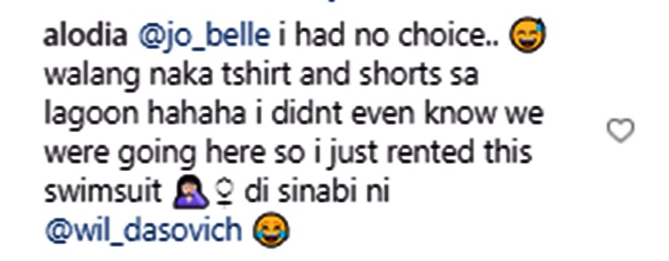 On the comment section, Alodia Gosiengfiao said that she had to wear swimsuit.