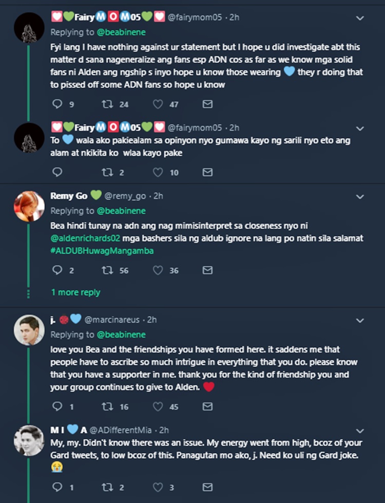 In line with the lengthy note that she posted on Twitter clarifying that there is no romantic relationship going on between her and Alden, Bea received various reactions from several fans of AlDub.