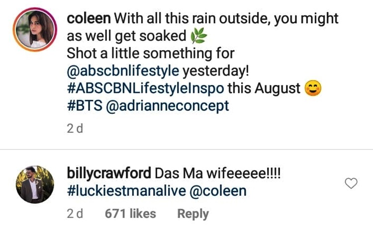 Kapamilya actress Coleen Garcia posted a bikini photo on her Instagram account and it received comment from her husband ‘It’s Showtime’ host Billy Crawford.