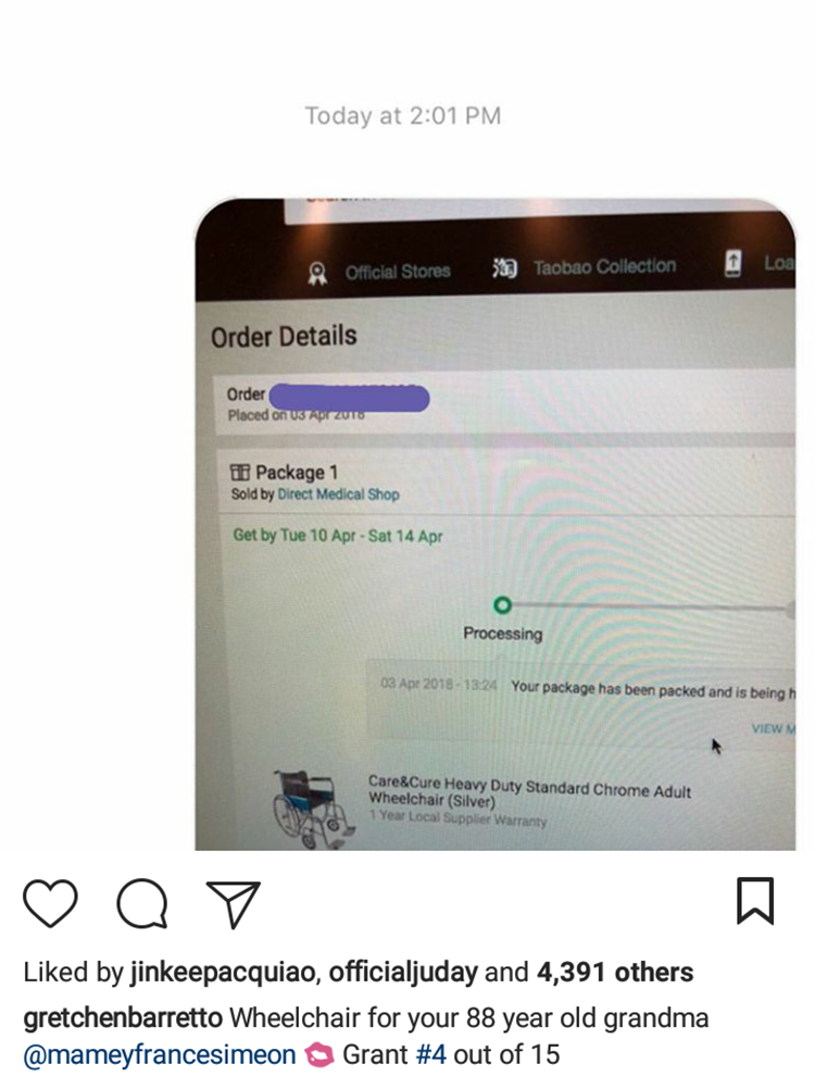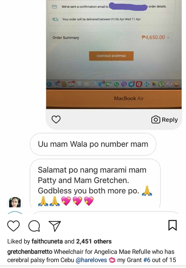 The charity endeavor which was started by Gretchen Barretto on her Instagram account has become an instant hit as she, along with two friends, grant wishes of netizens.