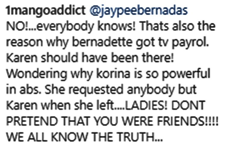 It was also said that Korina Sanchez and Karen Davila have expressed their thoughts against each other.