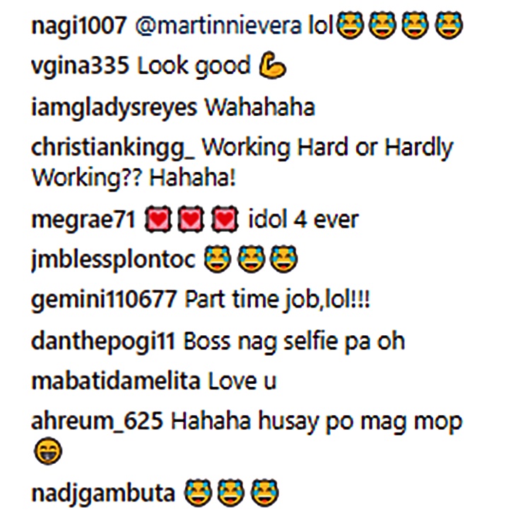 Since the video has no sound, Martin was mouthing some words and jokingly complained that the crew is doing nothing while he was busy cleaning the floor.