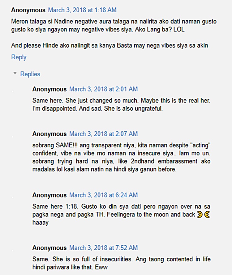 In addition, there are some who said that Nadine Lustre simply has negative vibes.