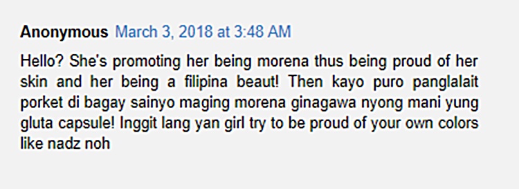 In the sea of negative comments about the almost reveal-it-all photo of Nadine, there was one comment which was in favor for the Kapamilya actress from a JaDine fan.