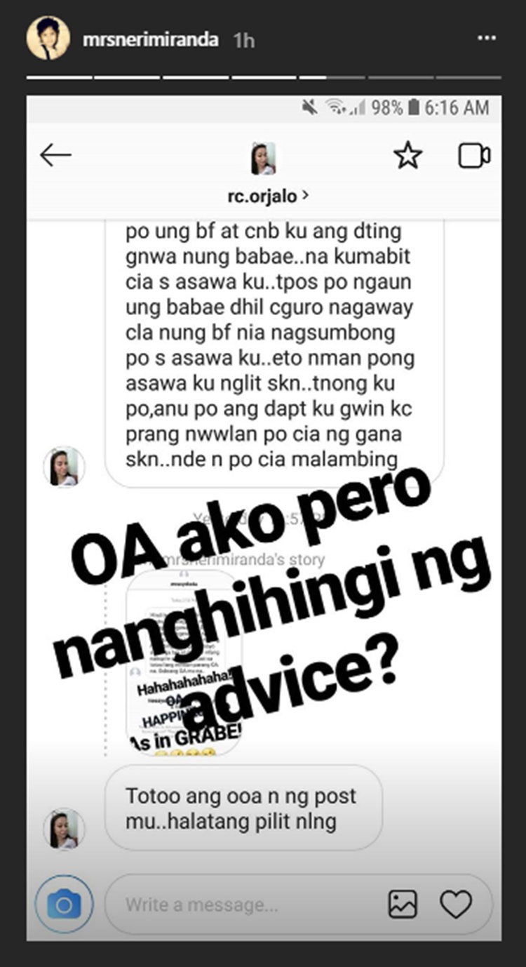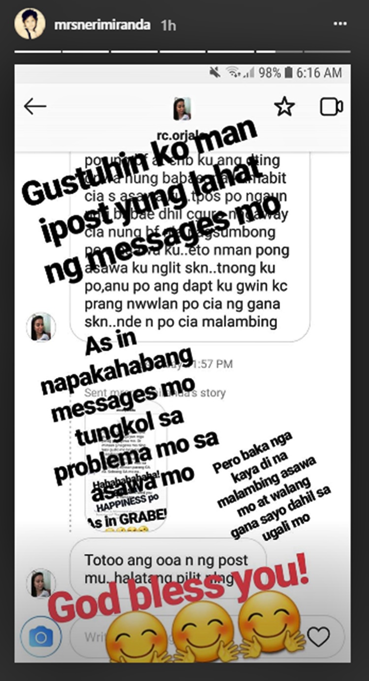 In addition, Neri Miranda also stressed out that Instagram user @rc_orjalo sent her long messages regarding the marital problem she has.