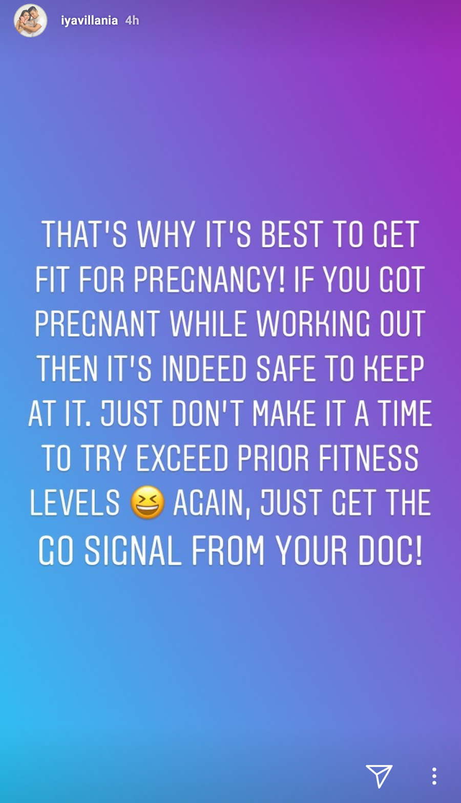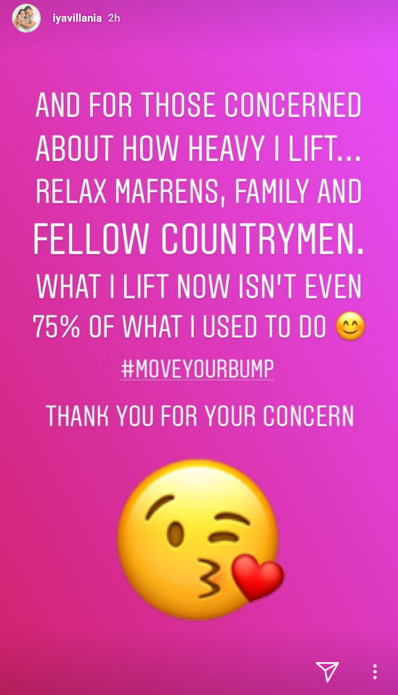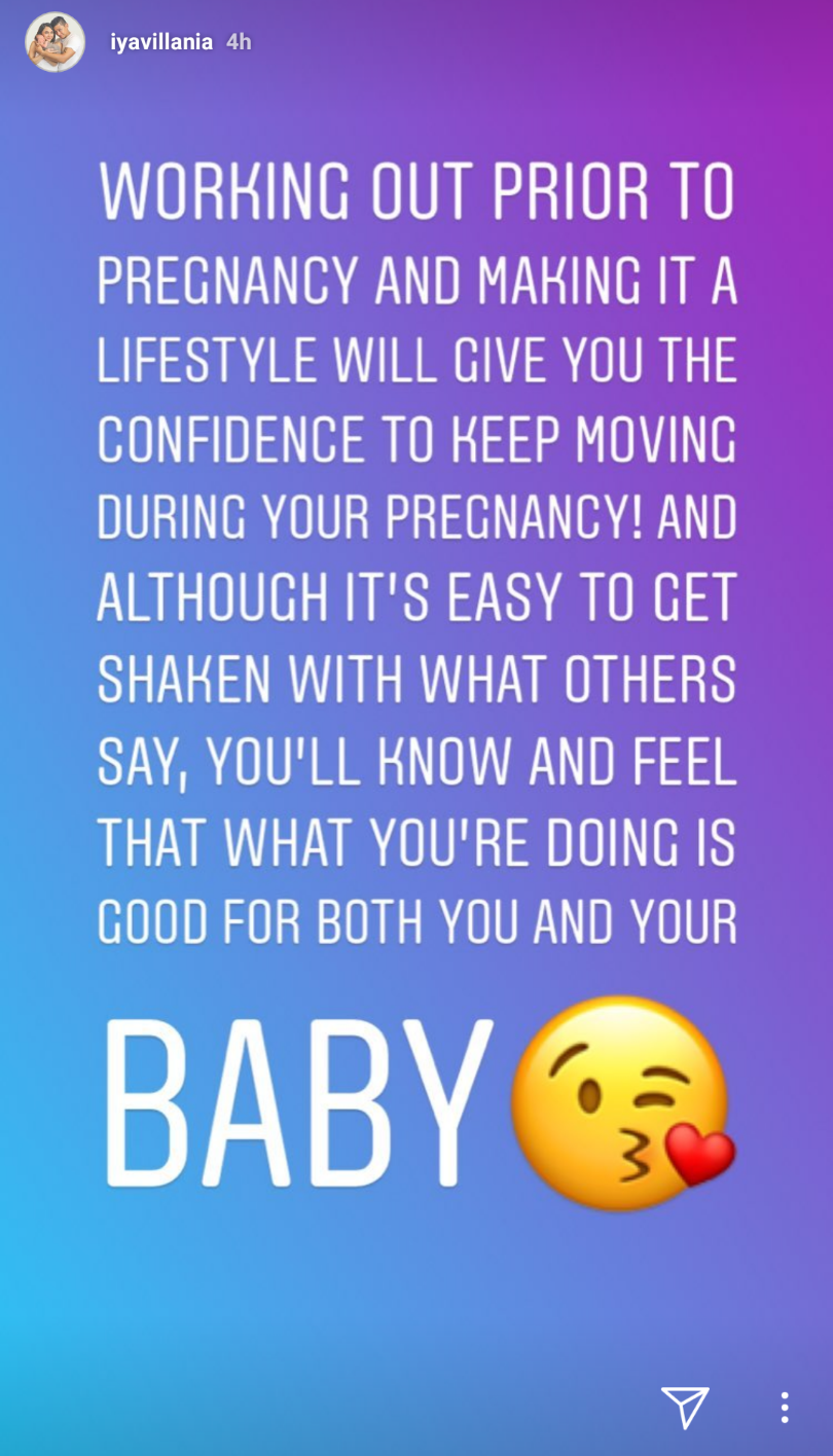 Iya Villania also stated in another post that making exercise a lifestyle will give a pregnant woman the confidence to keep moving. She also clarified that what she is lifting now is not even 75% of the weight that she used to lift.