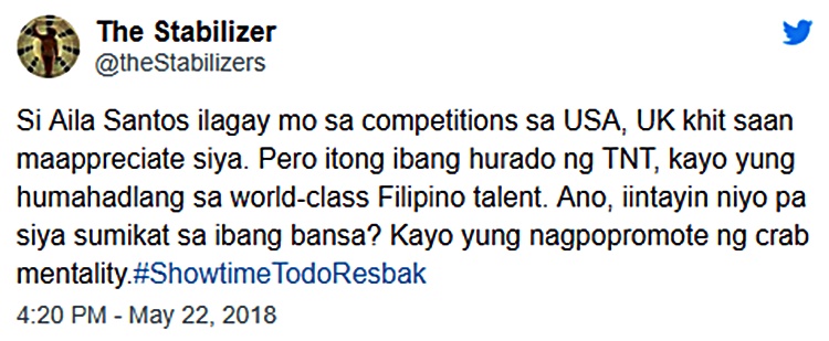 Several netizens bashed the hurados of ‘Tawag Ng Tanghalan’ for not choosing Aila Santos, based on a report.