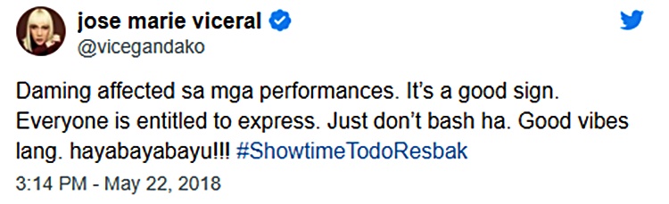 With regards to the bashing that TNT judges received from netizens, Vice Ganda immediately tweeted to appease the tension.