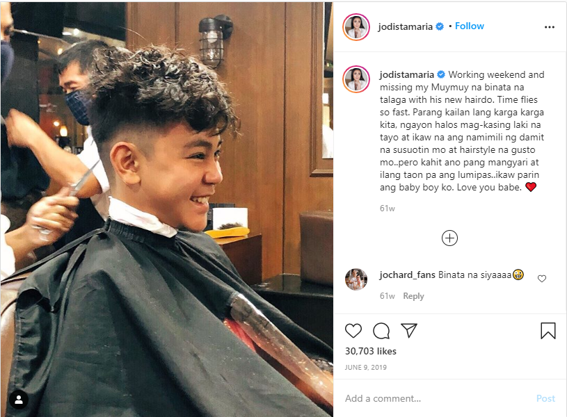 On her previous InstagrTime flies so fast. Parang kailan lang karga karga kita, ngayon halos mag-kasing laki na tayo at ikaw na ang namimili ng damit na susuotin mo at hairstyle na gusto mo..pero kahit ano pang mangyari at ilang taon pa ang lumipas..ikaw parin ang baby boy ko. Love you babeam post, Jodi captioned: