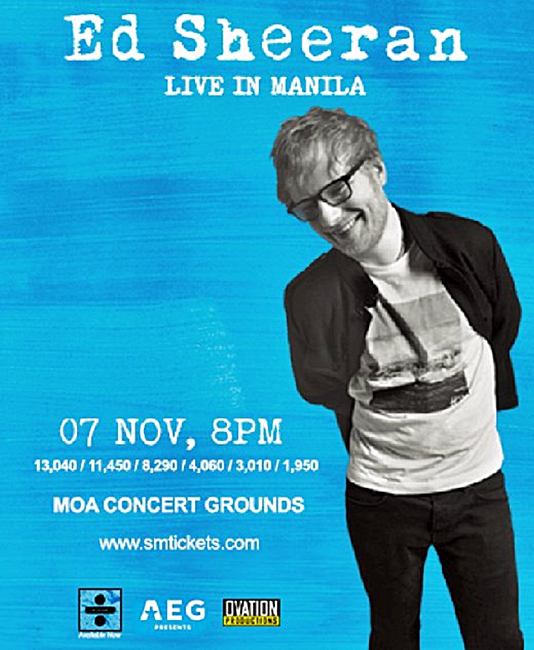 Fans of British singer and songwriter Ed Sheeran will have a great time listening to his hits on April 8 at Mall of Asia Concert Grounds.