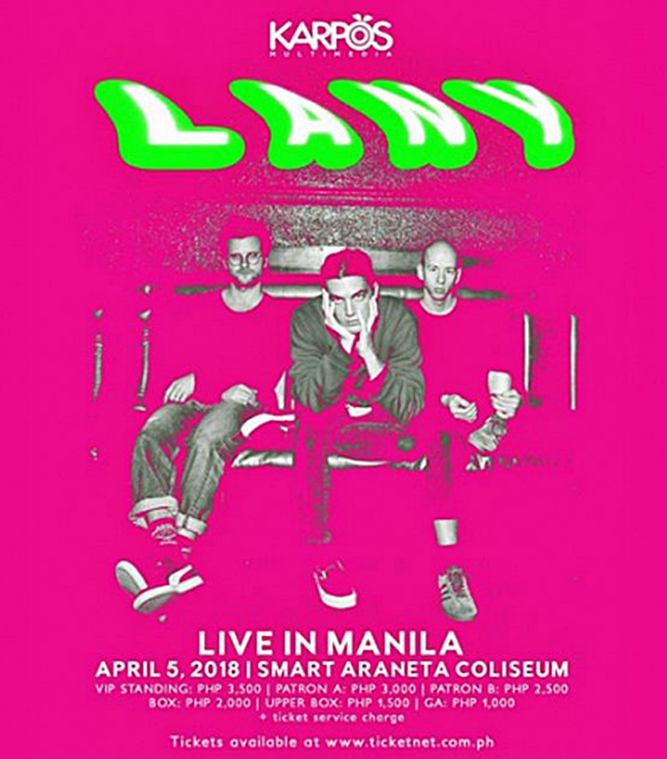 On April 5 and 6, American indie pop band Lany will rock the Smart Araneta Coliseum.