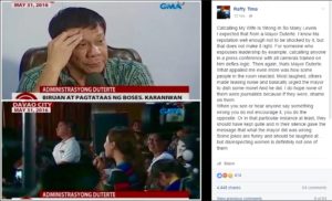 Raffy Tima Reacted To “Catcalling” Of President-elect Duterte To His Wife Mariz Umali