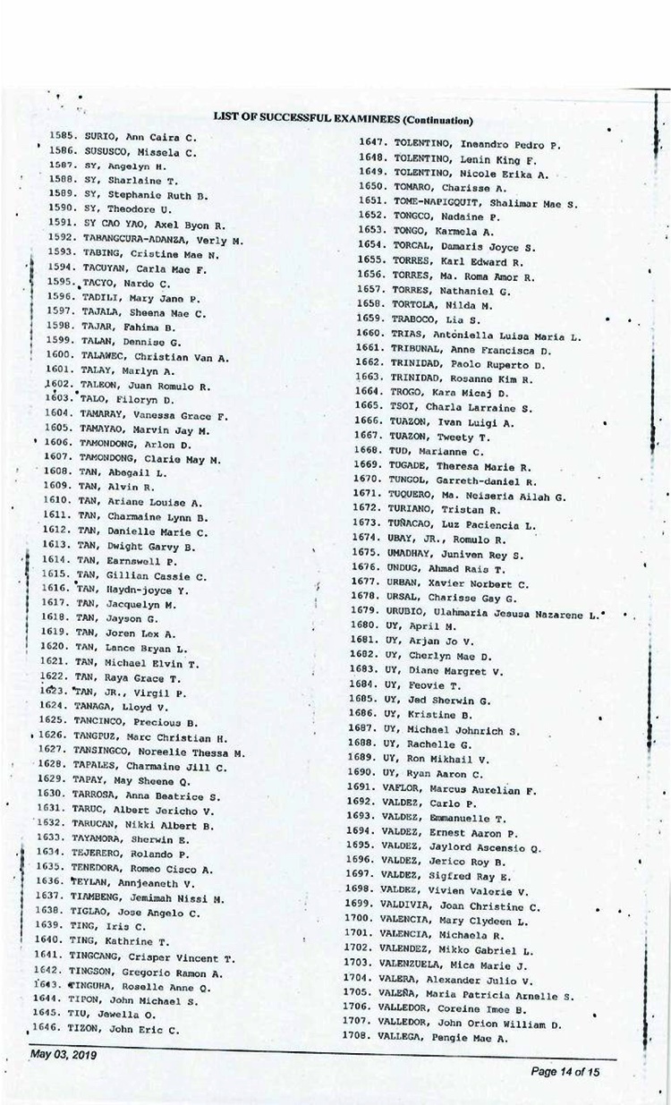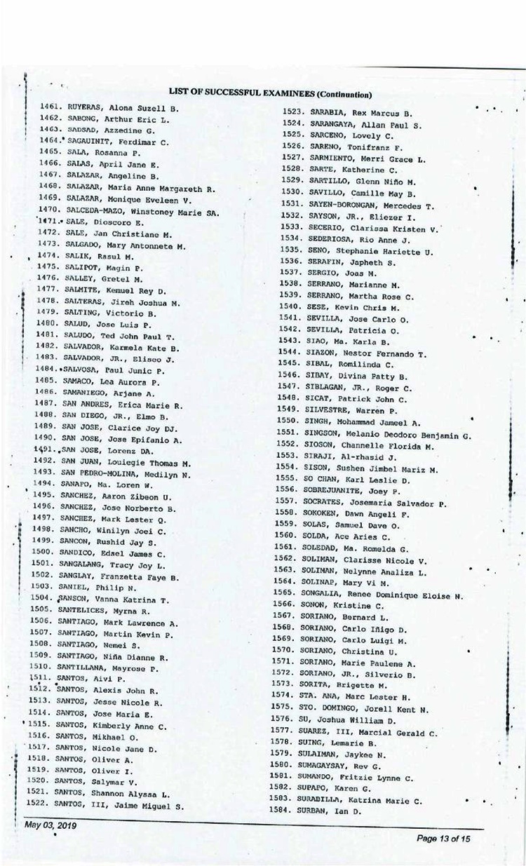 Here is the Bar Exam Results November 2018 list of passers (R-Z)