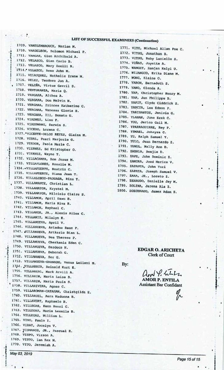 This is the Bar Exam Results November 2018 list of passers (R-Z) as released by the Supreme Court.