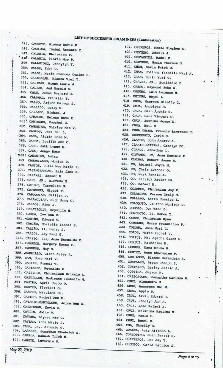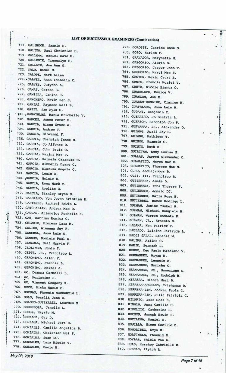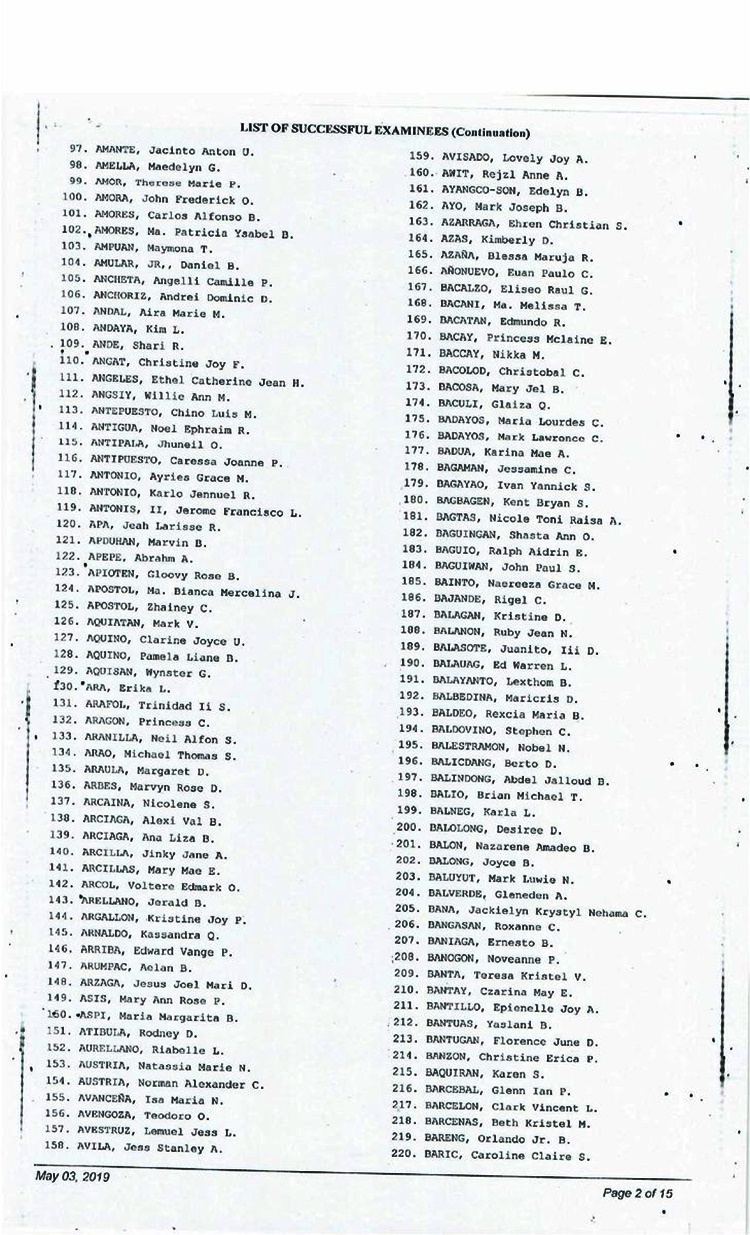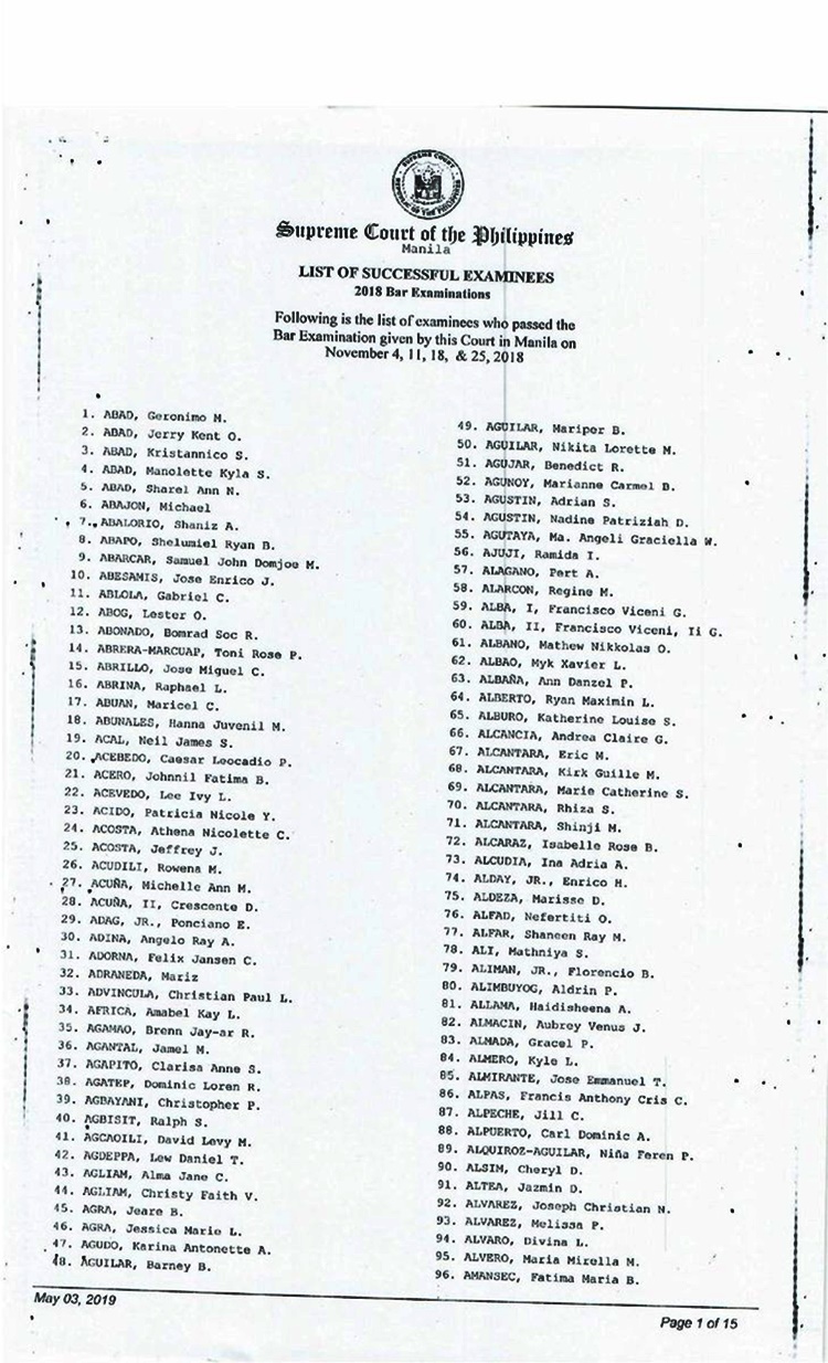 Here is the Bar Exam Results November 2018 list of passers (A-H)