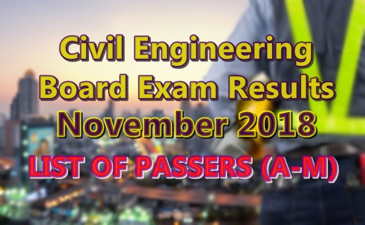 Here is the Civil Engineering Board Exam Results November 2018 List Of Passers (A-M)