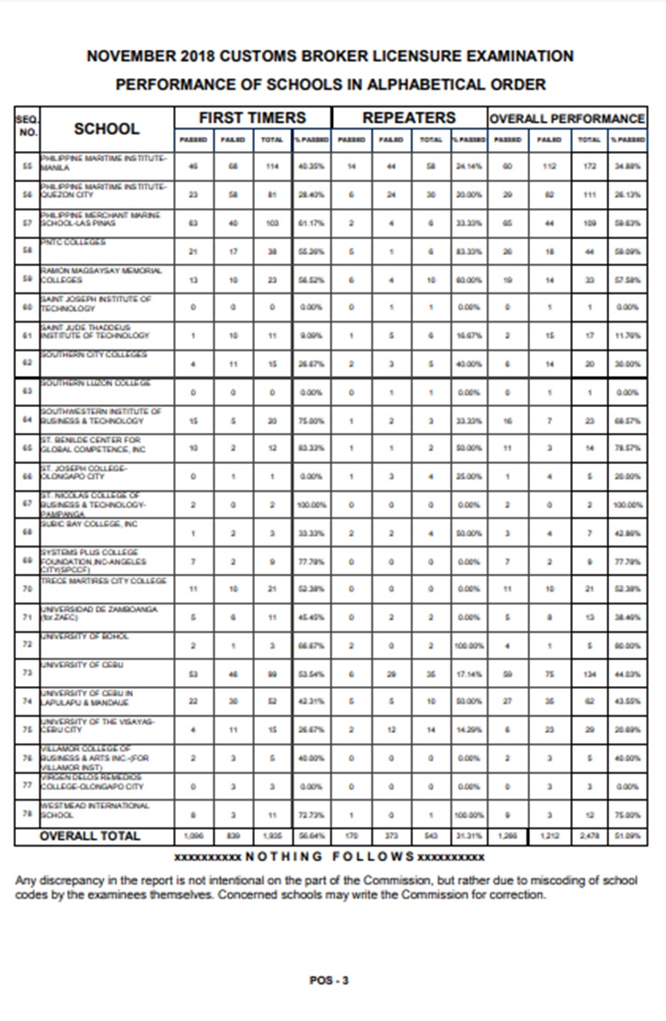 Customs Broker Board Exam Results November 2018 Top Performing Schools