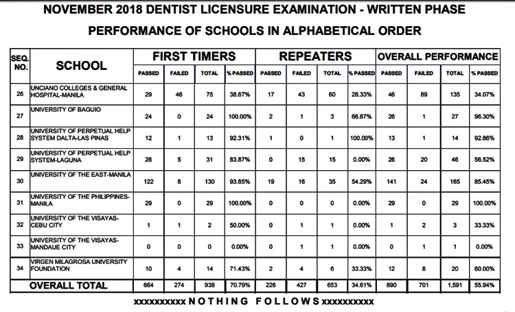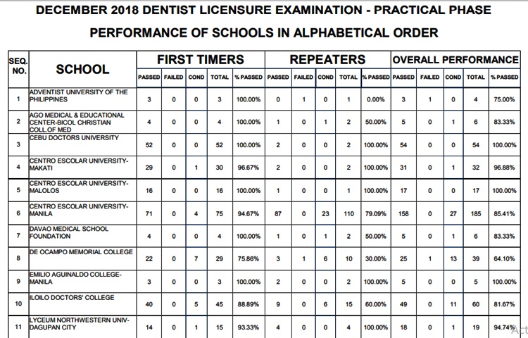 This is the Dentist Board Exam Results December 2018 (Practical) full list of passers as released by the Professional Regulation Commission (PRC).