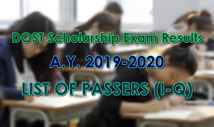Here is the DOST Scholarship Exam Results Academic Year 2019-2020 list of passers (I-Q)