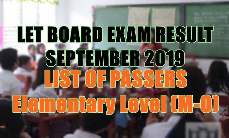 This is the LET Board Exam Result September 2019 list of passers-Elementary Level (M-O) as released by the Professional Regulation Commission (PRC).