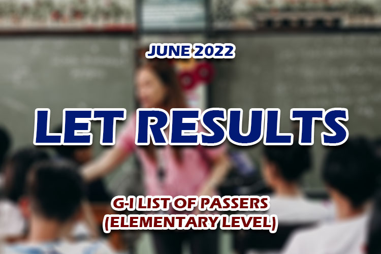 LET RESULTS 2022 — This is the Teacher Board Exam Result June 2022 G-I list of passers (elementary level) as released by the Professional Regulation Commission (PRC).