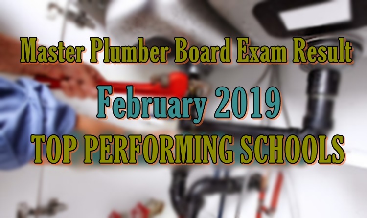 Here are the Master Plumber Board Exam Result February 2019 top performing schools