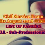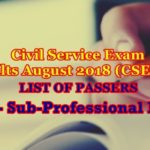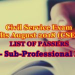 Civil Service Exam Results August 2018-CAR Passers (Sub-Prof. Level)