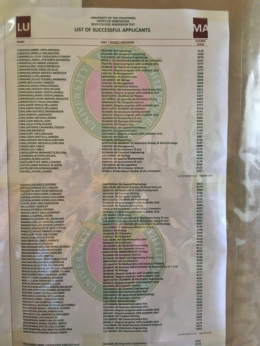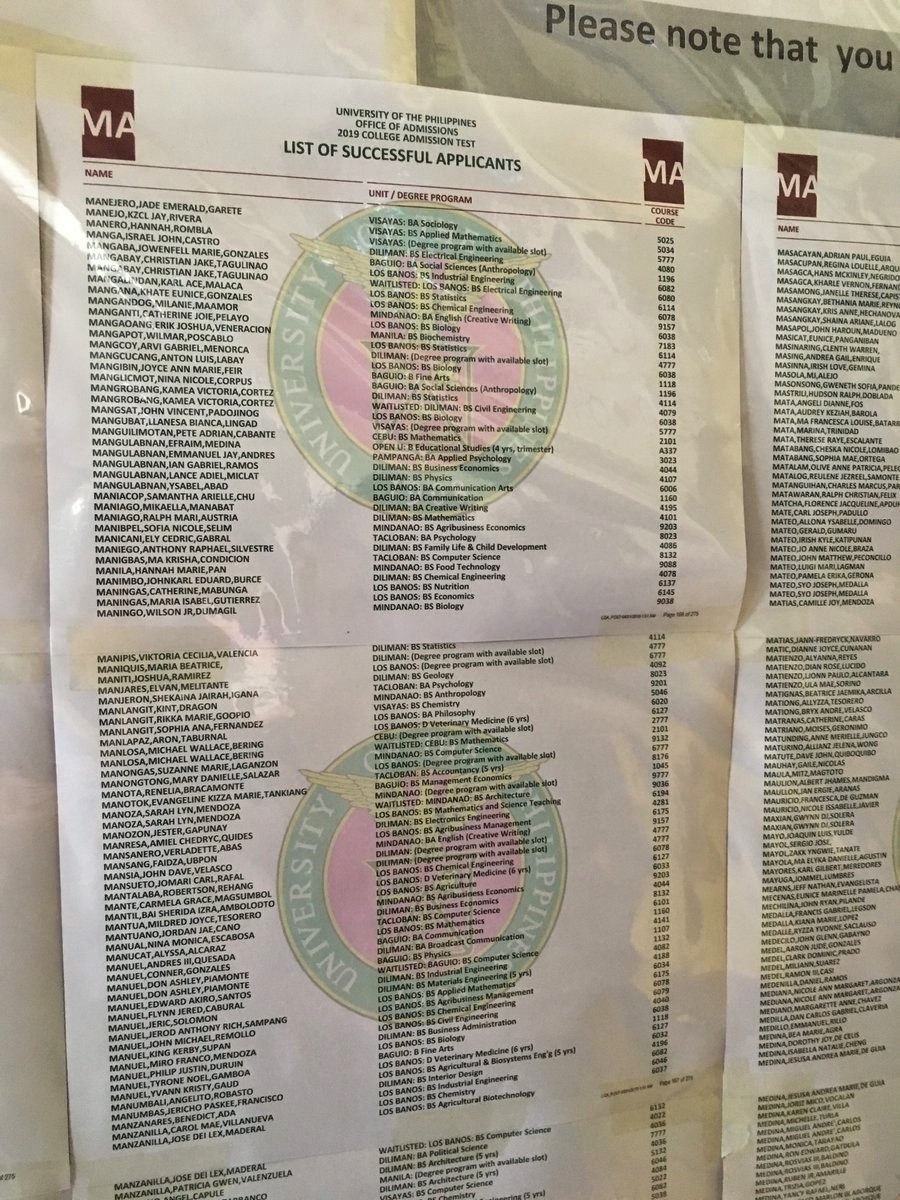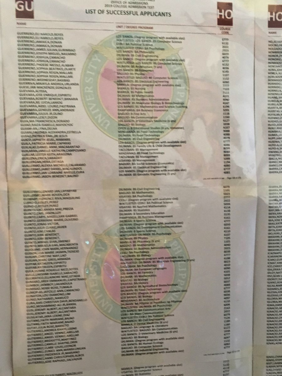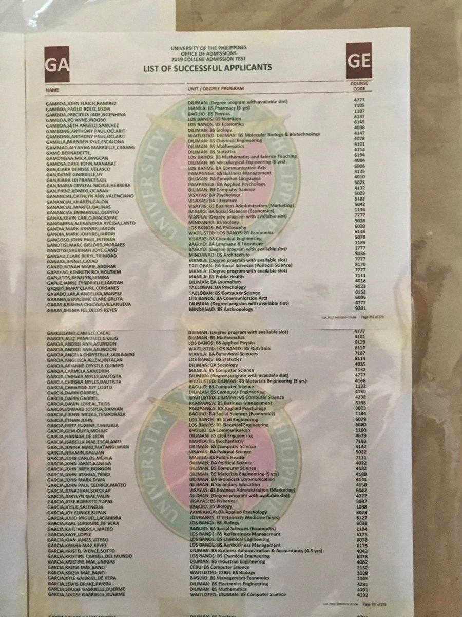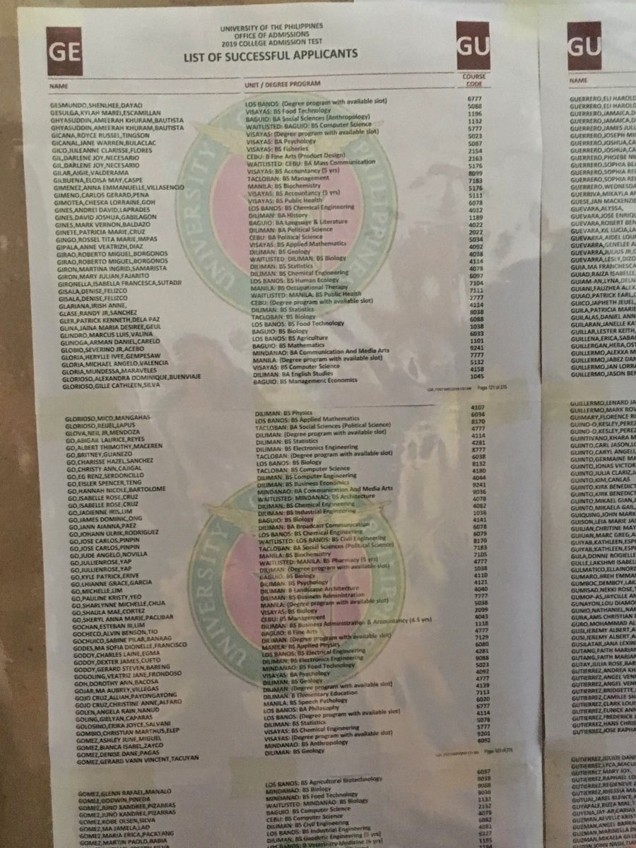 This is the UPCAT A.Y 2019-2020 list of passers (G-N) as released by the University of the Philippines (UP).