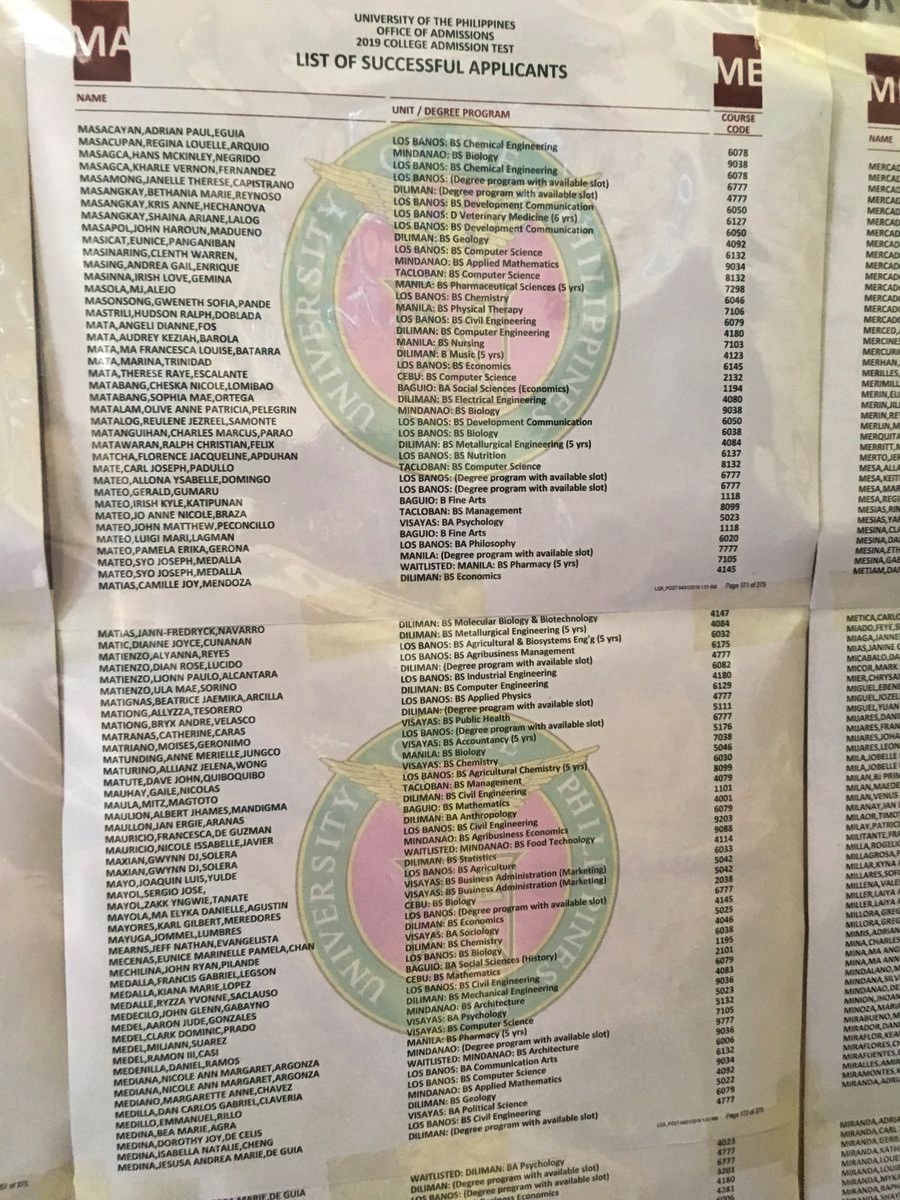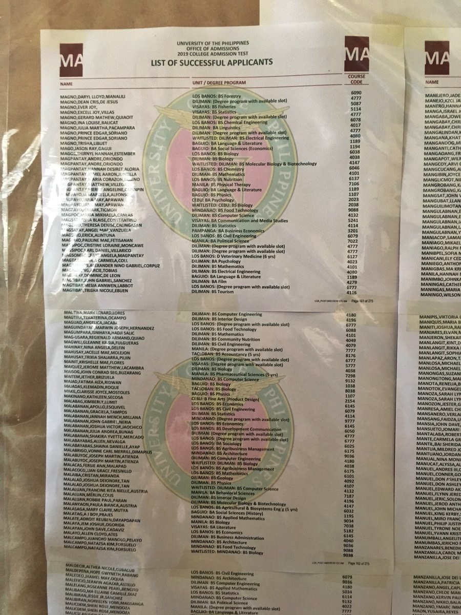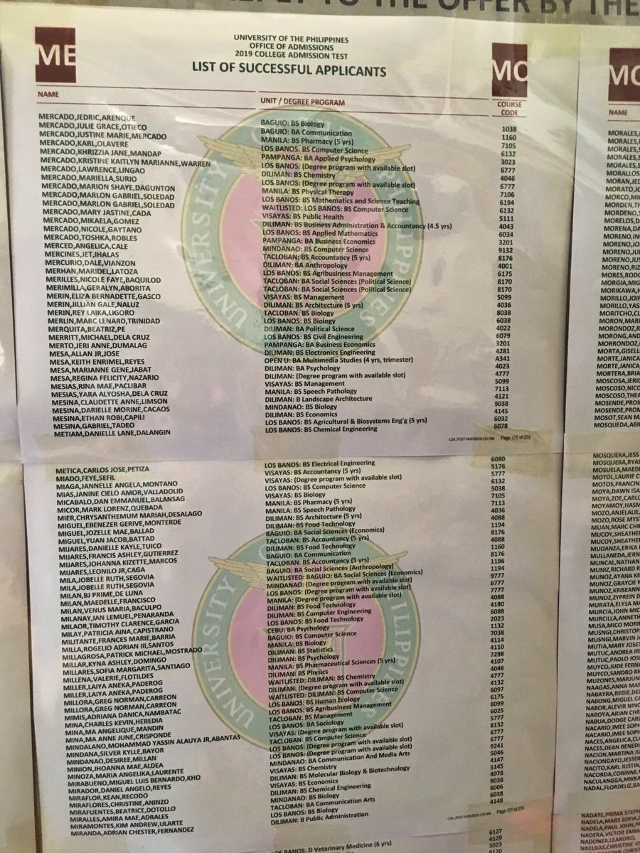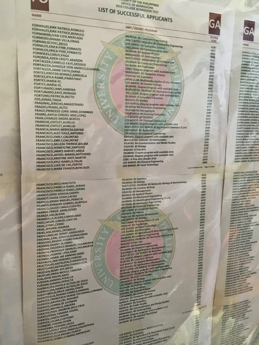 This is the UPCAT A.Y 2019-2020 list of passers (G-N) as released by the University of the Philippines (UP).