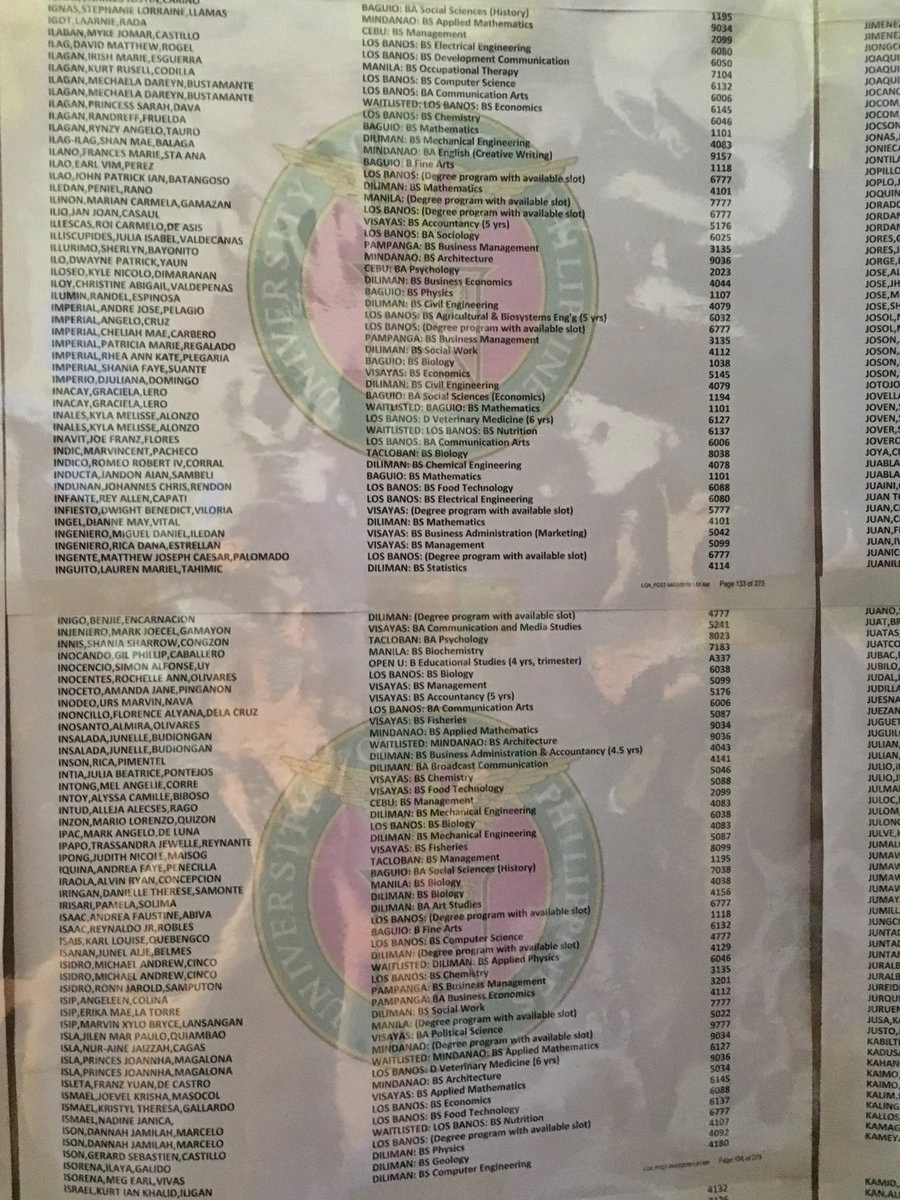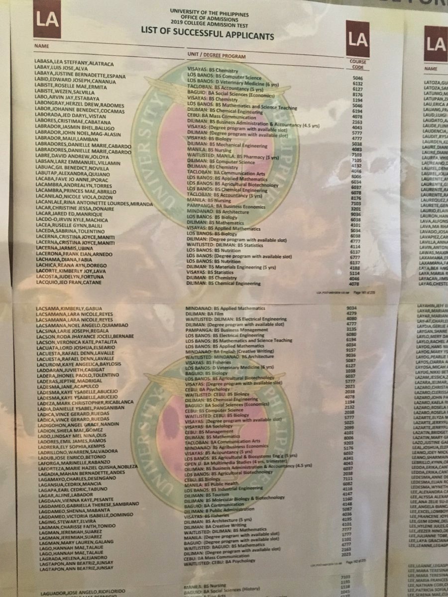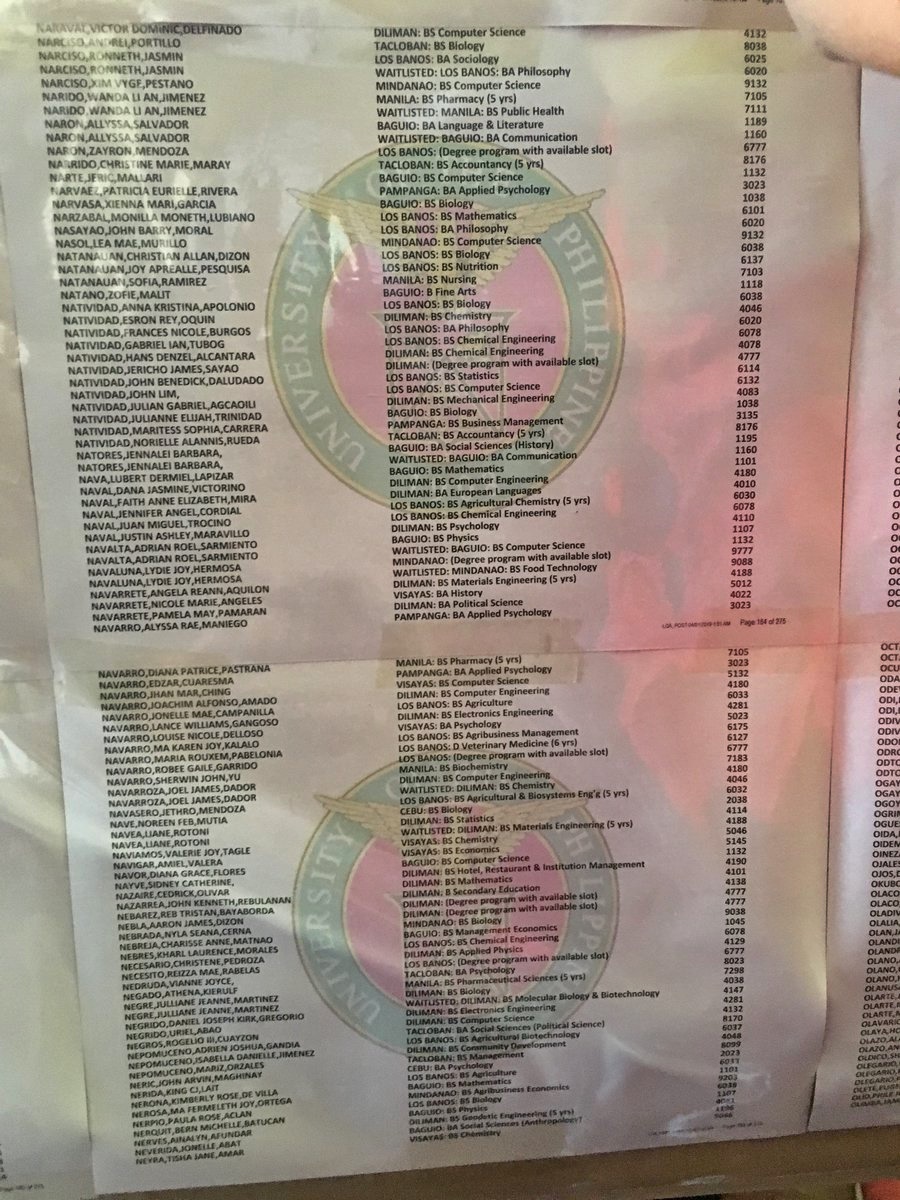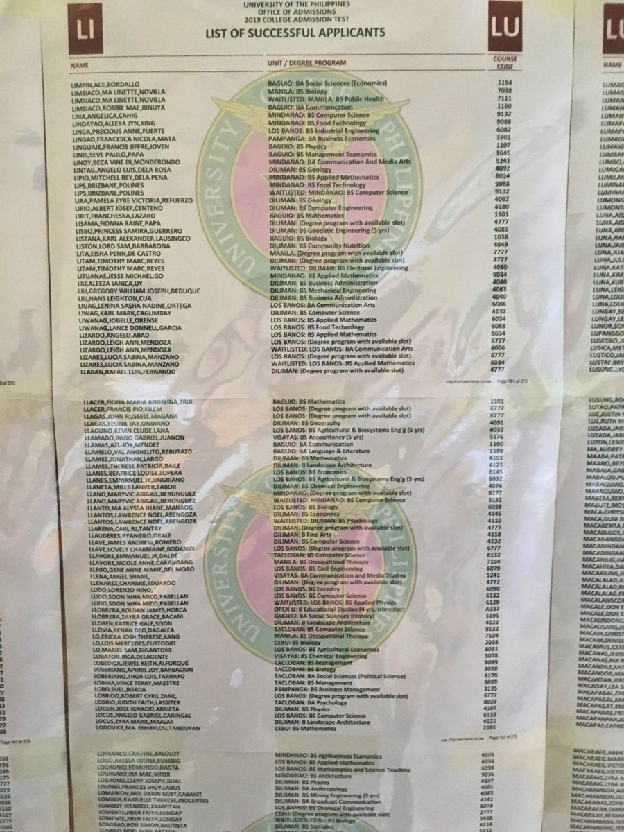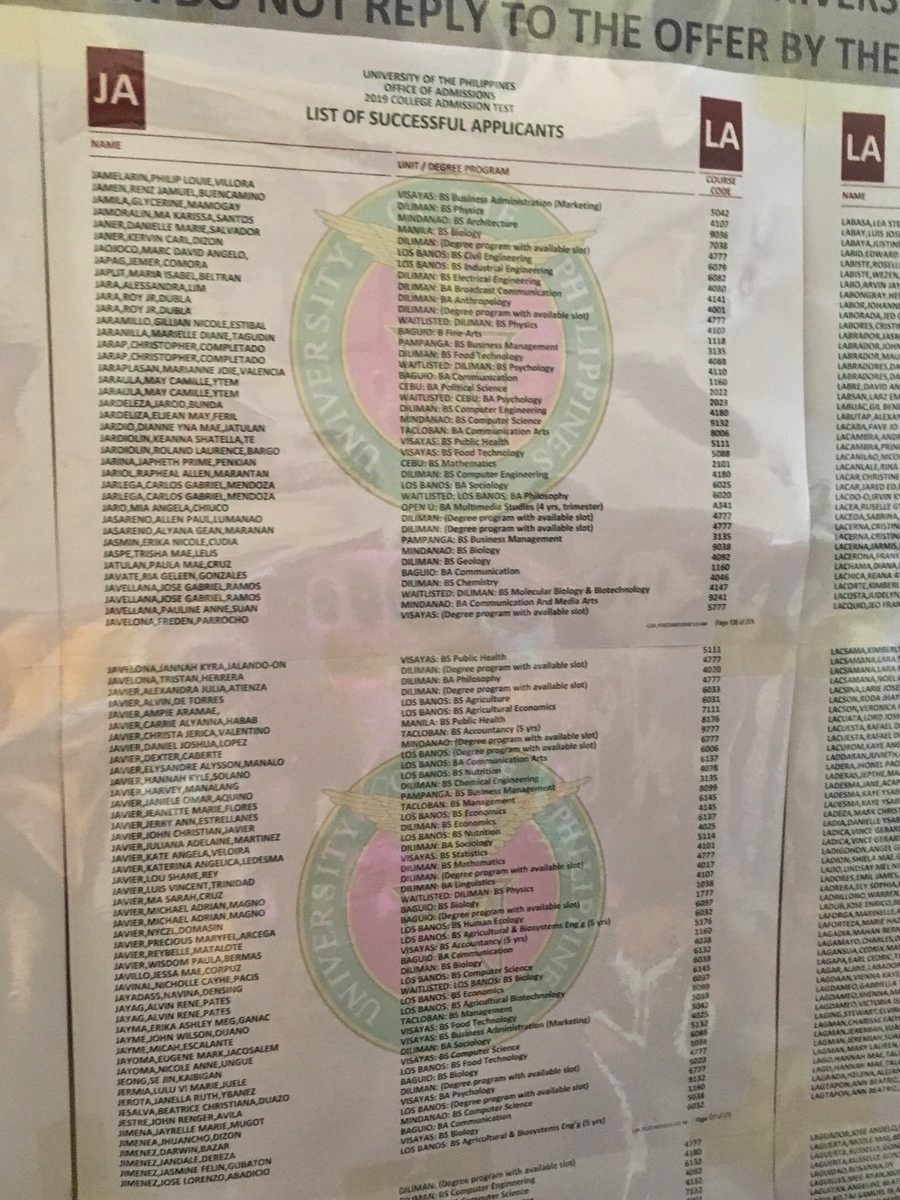 This is the UPCAT A.Y 2019-2020 list of passers (G-N) as released by the University of the Philippines (UP).