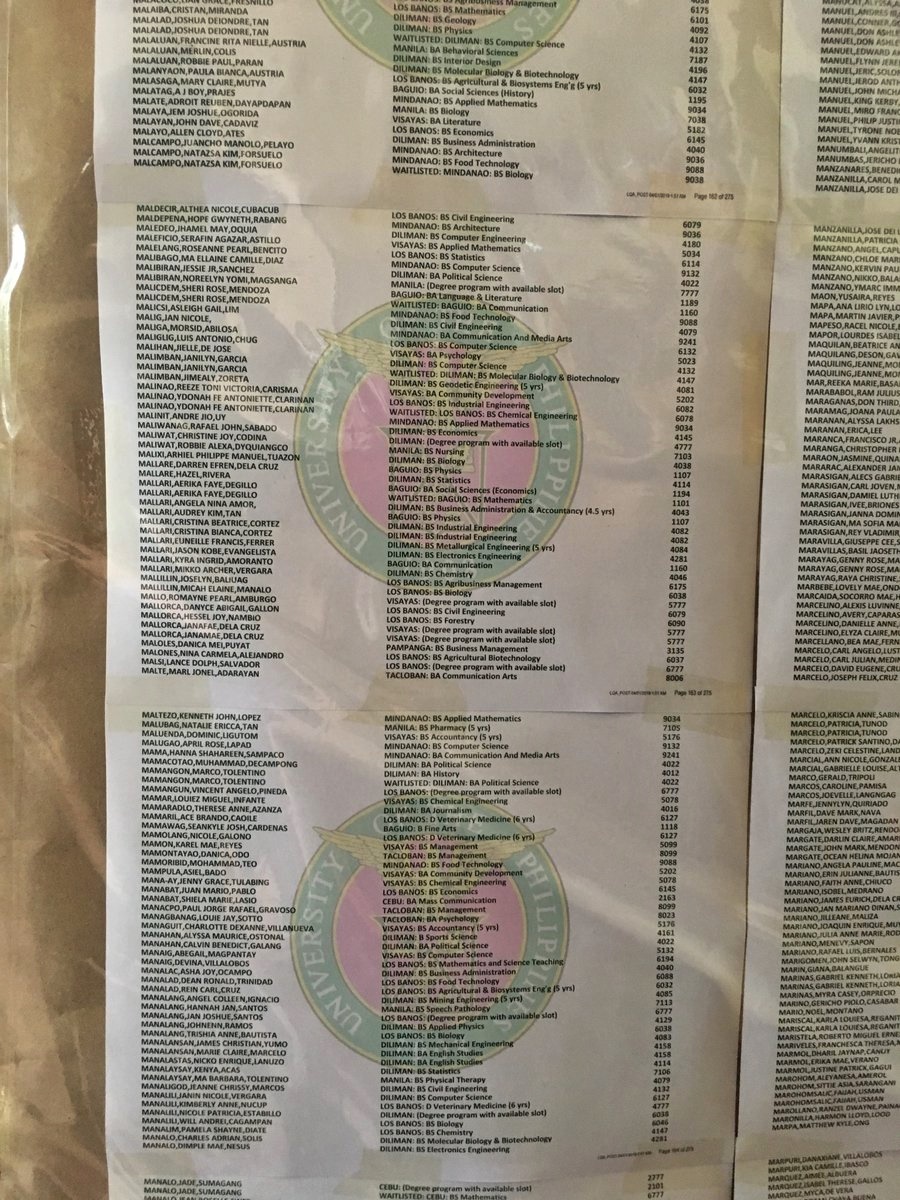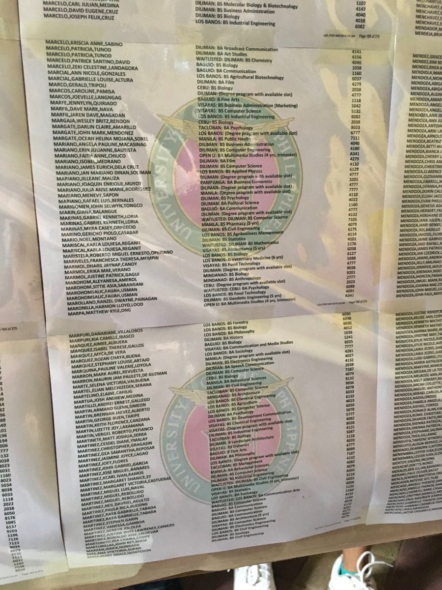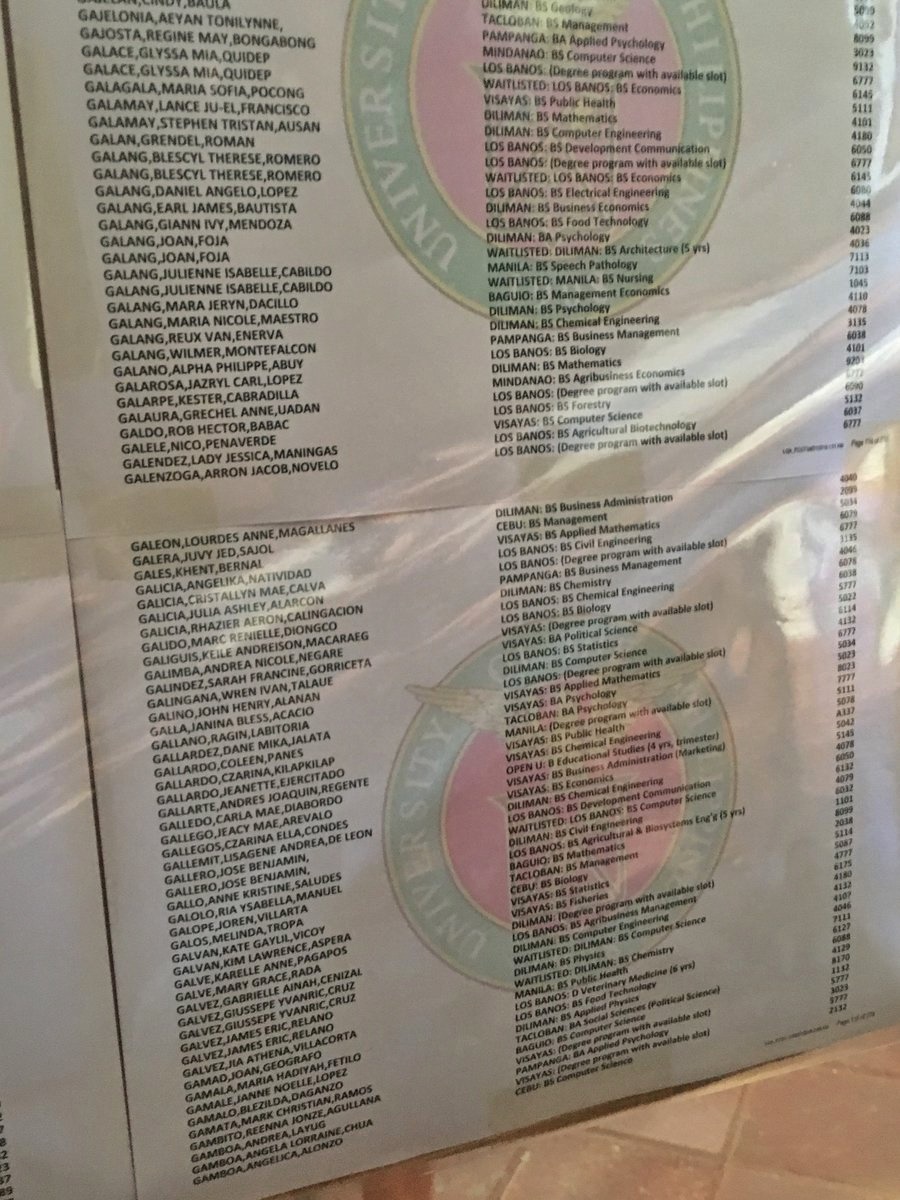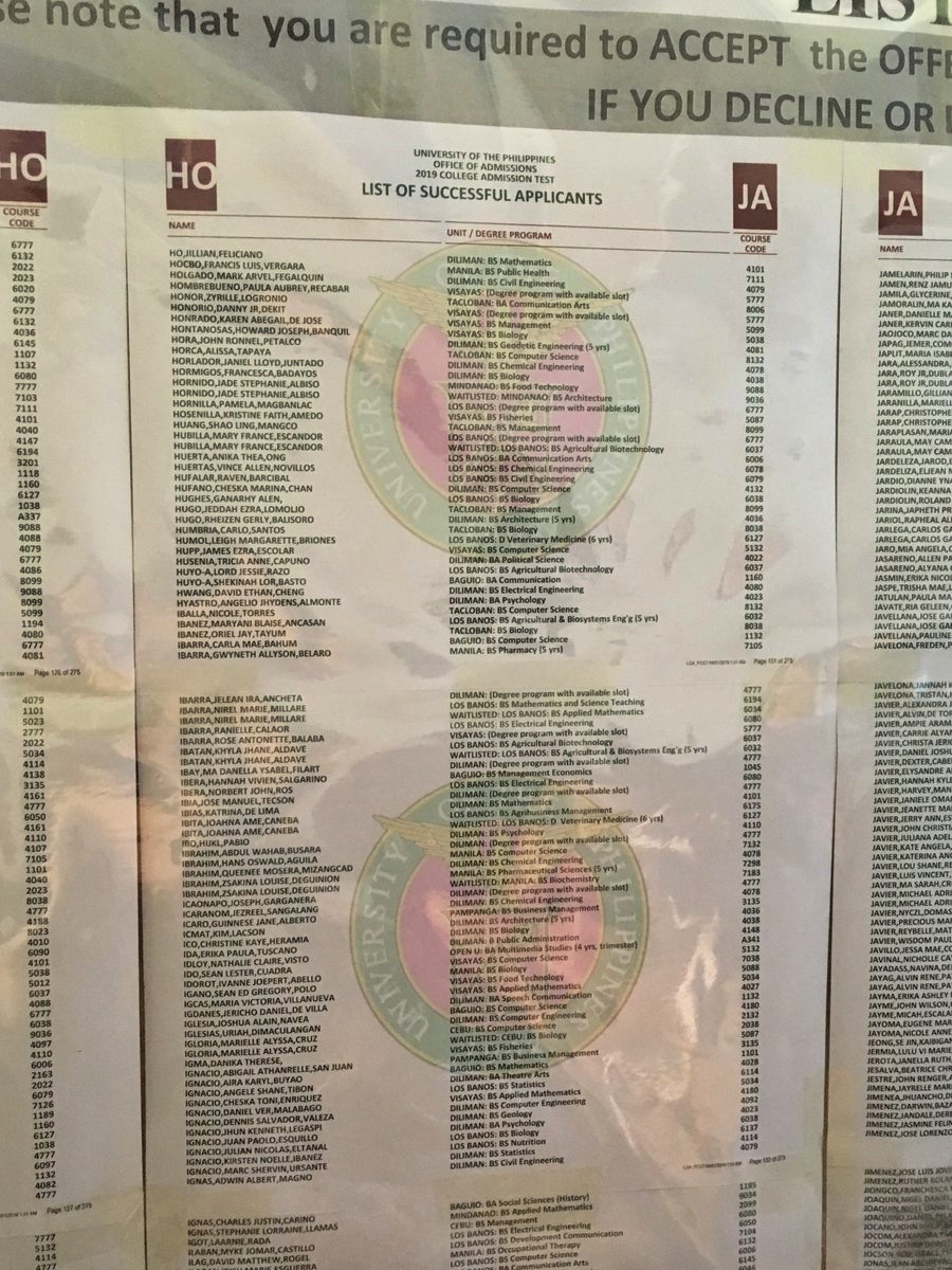 Here are the UPCAT Results A.Y. 2019-2020 list of passers (G-N)