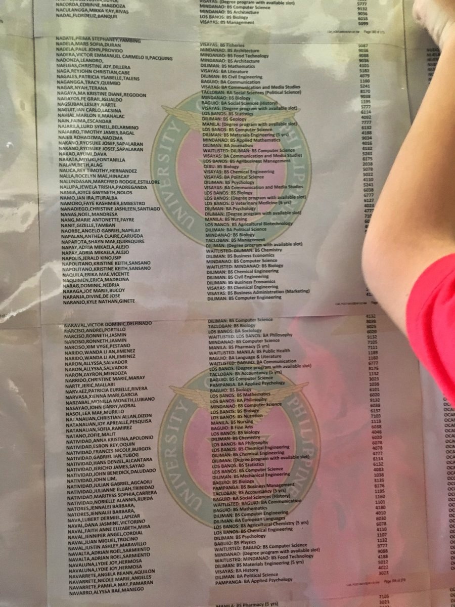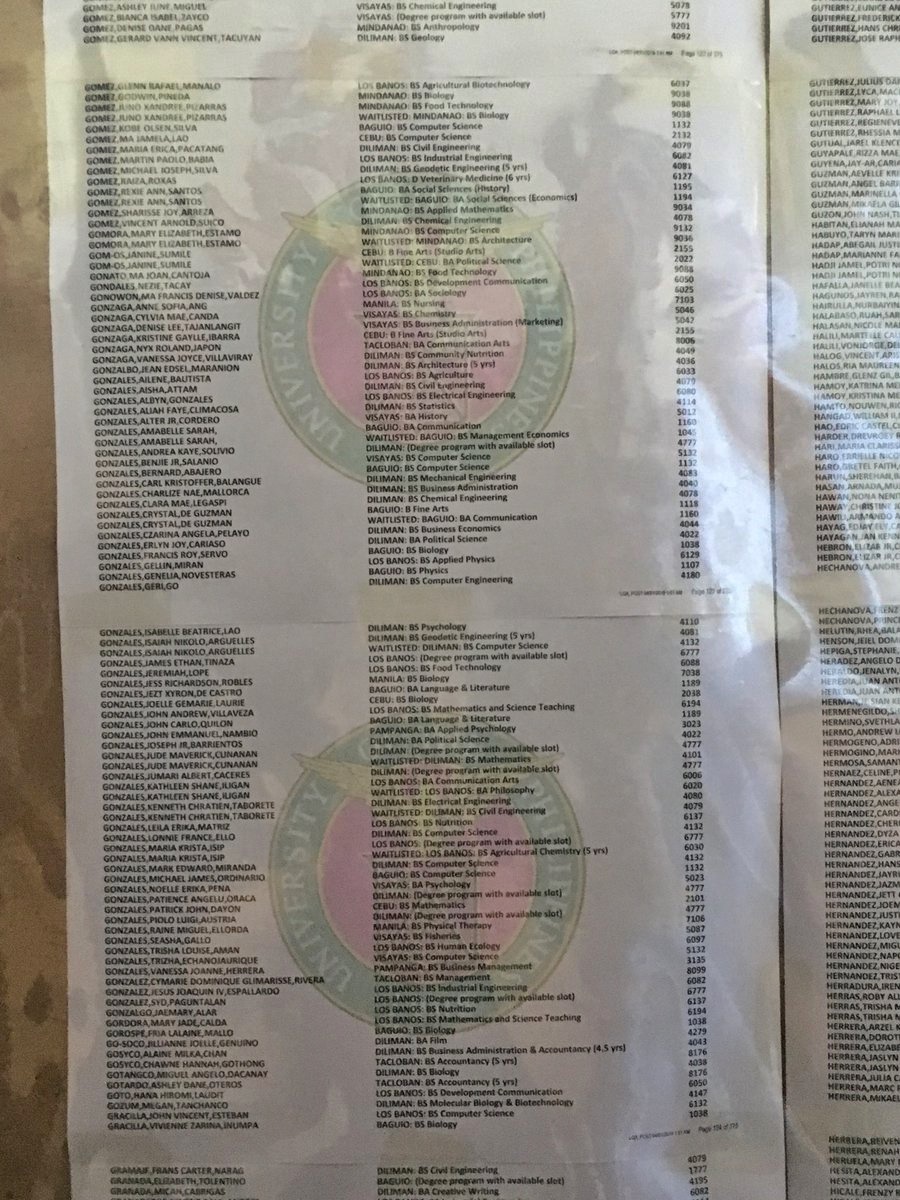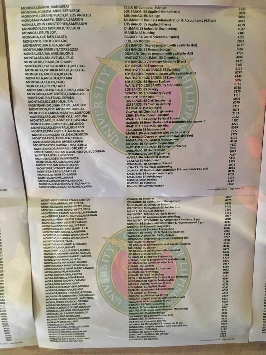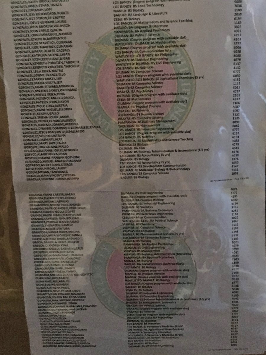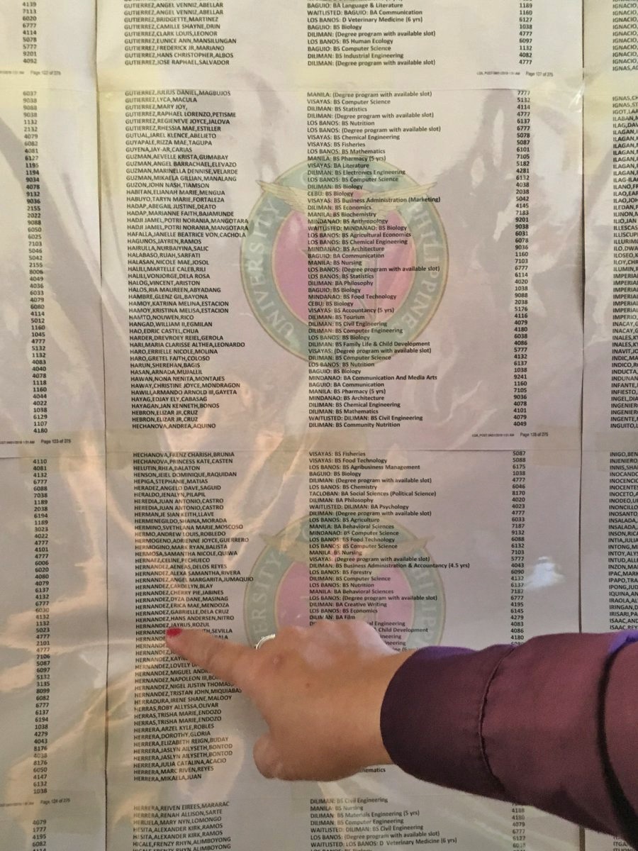 Here are the UPCAT Results A.Y. 2019-2020 list of passers (G-N)