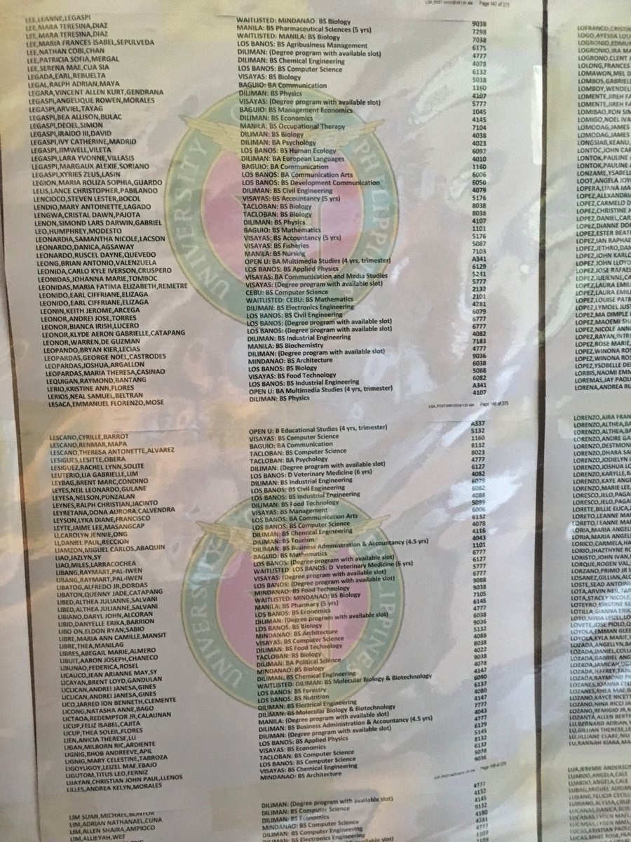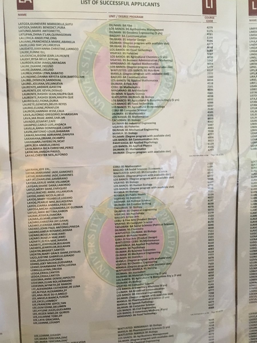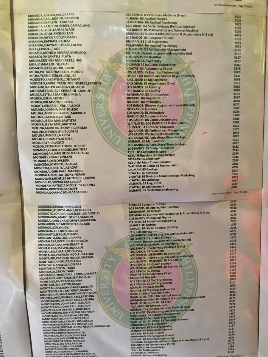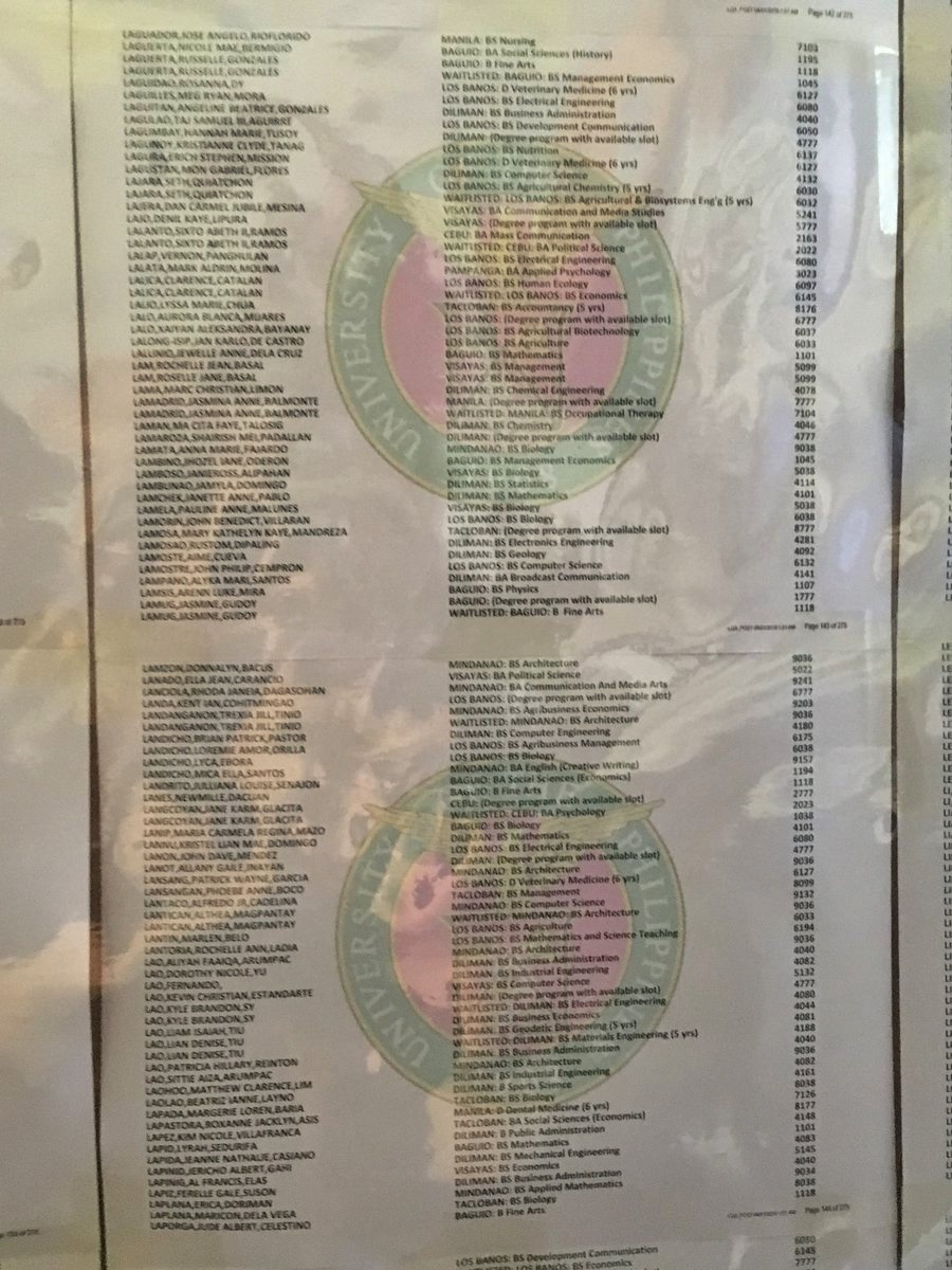 Here are the UPCAT Results A.Y. 2019-2020 list of passers (G-N)