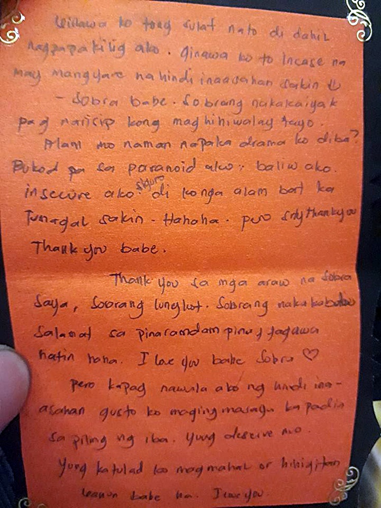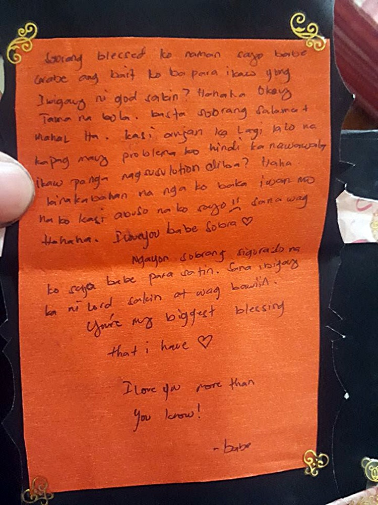 A netizen from Bulacan named Leomar Tolentino shared on his Facebook Page that he received a letter from his girlfriend and it really made him cry.
