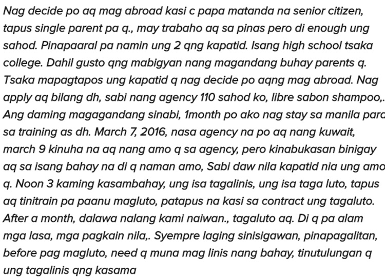 Here is the story of an OFW about all the hardships she experience in the hands of her employers that she had to bear just to provide for her family