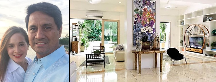 The celebrity couple turned politicians wanted their living area in their house located in an exclusive subdivision to be dominated by natural light that is why it has wide sliding doors and windows. It also features a painting of Isabel Diaz under a buffet table.