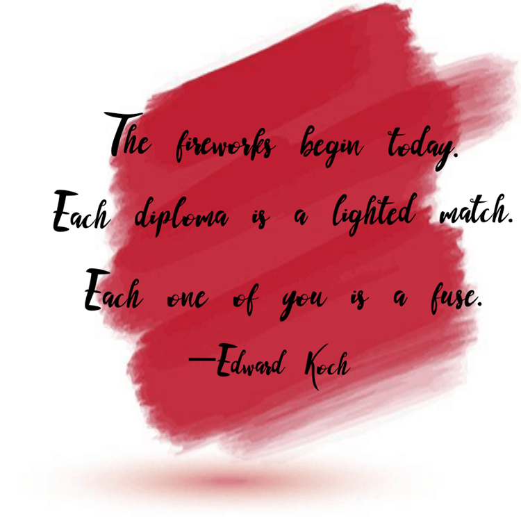 “The fireworks begin today. Each diploma is a lighted match. Each one of you is a fuse.” —Edward Koch