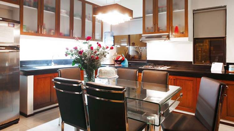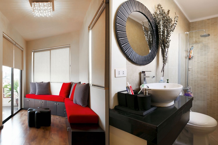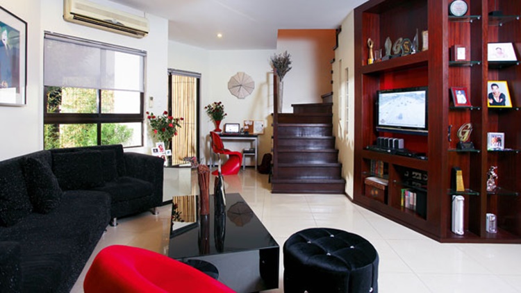 The black sofa with very noticeable glitters accentuated the white walls so perfectly and some red furniture even highlighted the modern look of the place. The whole house is lighted with yellow to add warmth to every corner.