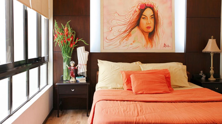 John’s private place still observed the color scheme he had for the whole house. The highlight of his room is the portrait of himself looking like a goddess which is placed above his bed. The wide windows also complement the overall look of the room.