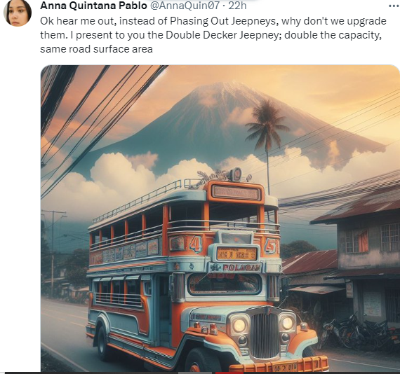 In the face of the impending deadline for the phase-out of traditional jeepneys, where the goal is to replace them with more modern models, a netizen has put forward a suggestion to preserve the jeepney culture, and one of these suggestions is the use of the Double Decker Jeepney.