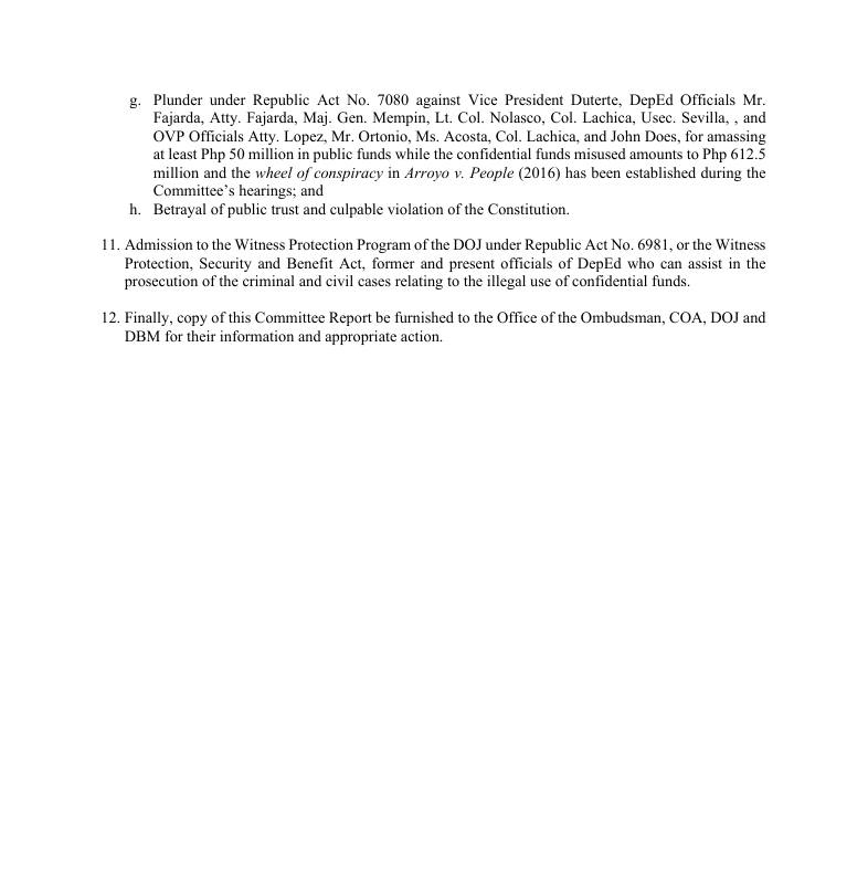 Beyond recommending legal action, the committee also urged the revision of Joint Circular 2015-01, a regulation that governs the use, handling, reporting, and auditing of confidential and intelligence funds. Lawmakers stressed the need for stronger safeguards and transparency in fund utilization to prevent potential abuse of public resources in the future.