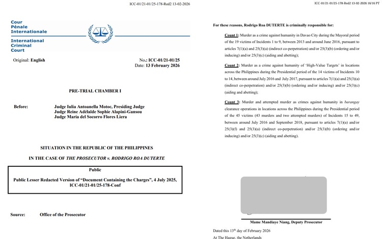 ICC Releases Charges Detailing Alleged Systematic Killings Linked to Duterte Drug War