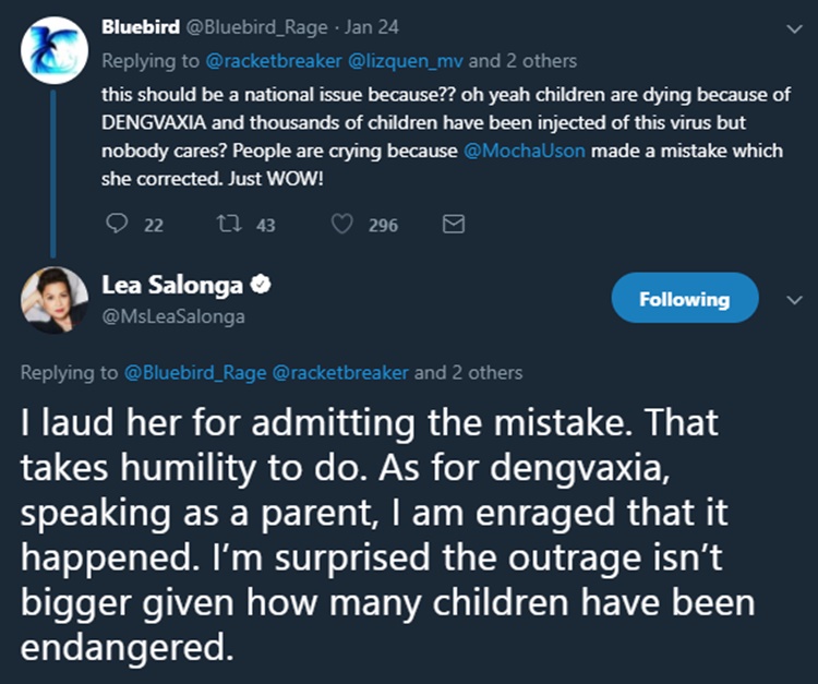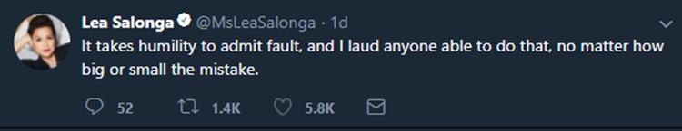 On her reply to a netizen who talked about the magnitude given to Uson’s mistake but less attention is given to important issues in society, Lea had a positive comment.