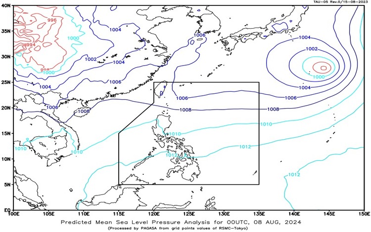 Synopsis: The Southwest Monsoon is currently affecting Northern and Central Luzon. A tropical cyclone outside the Philippine Area of Responsibility (PAR), Tropical Storm Maria (2405), was located 2,230 km northeast of Extreme Northern Luzon as of 3:00 AM today. Maria has maximum sustained winds of 65 km/h and gustiness up to 80 km/h, moving east-northeastward at 15 km/h.