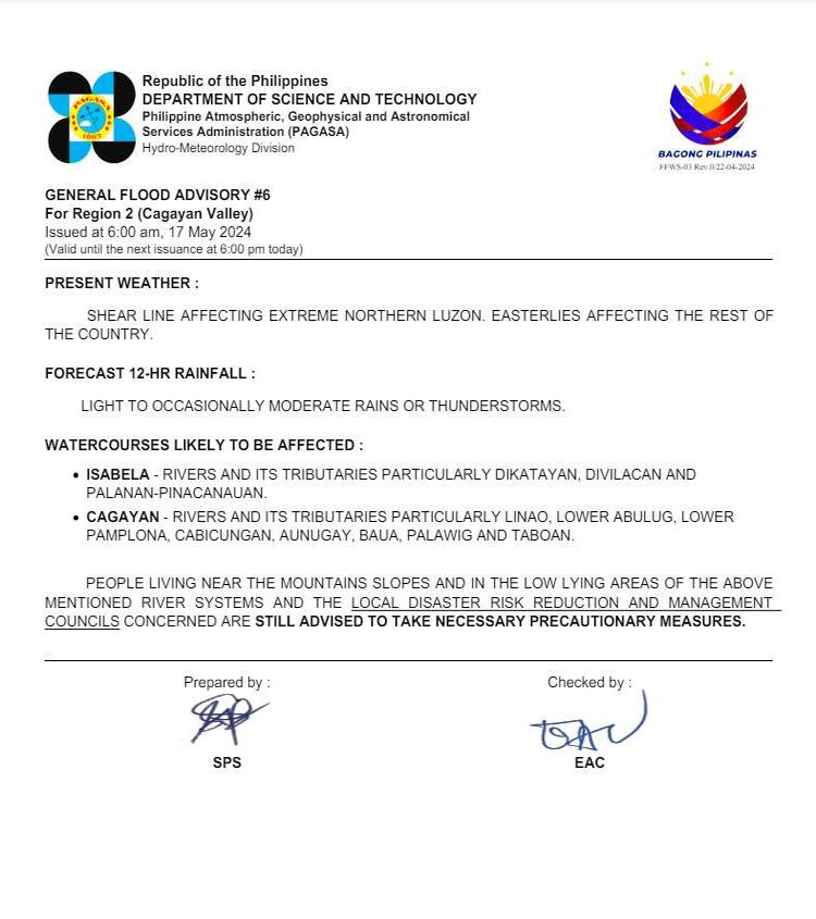 - Region 2 (Cagayan Valley): Flood advisory GFA#6 is also in place.