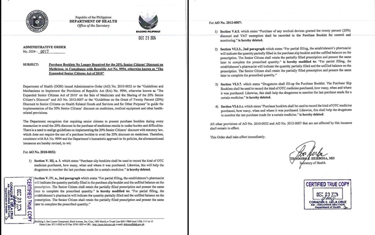 In a significant policy shift aimed at enhancing healthcare accessibility for senior citizens, the Department of Health (DOH) has announced that effective immediately, senior citizens are no longer required to purchase booklets to avail of medicine discounts. This change is formalized under Administrative Order 0017, issued by DOH Secretary Teodoro Herbosa.
