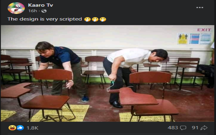 A Facebook page recently posted a photo of Vice President Sarah Duterte And President Ferdinand Marcos painting a school chair as Brigada Eskwela begins.